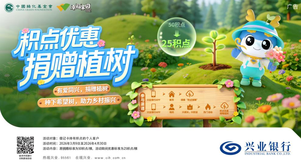 “積點(diǎn)捐贈(zèng)植樹(shù)”活動(dòng)以“小積點(diǎn)”撬動(dòng)“大公益”,客戶(hù)通過(guò)手機(jī)銀行即可使用所持積點(diǎn)捐贈(zèng)枸杞樹(shù)苗,一鍵參與綠色生態(tài)共建。捐贈(zèng)完成后,中國(guó)綠化基金會(huì)將為每位參與者頒發(fā)專(zhuān)屬電子植樹(shù)證書(shū),讓每一份綠色貢獻(xiàn)有跡可循、有愛(ài)可記。興業(yè)銀行將捐贈(zèng)苗木數(shù)量按規(guī)則精準(zhǔn)折