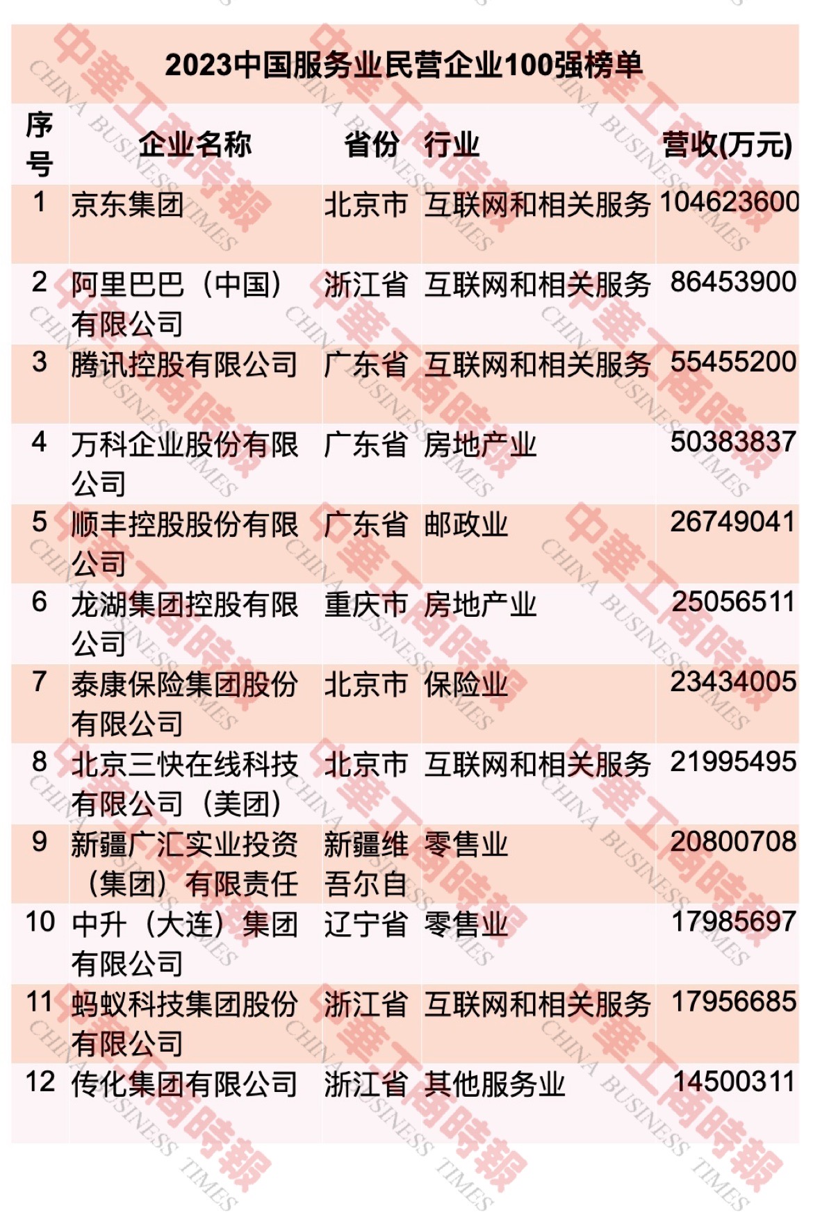 2023中國服務業(yè)民營企業(yè)100強榜單