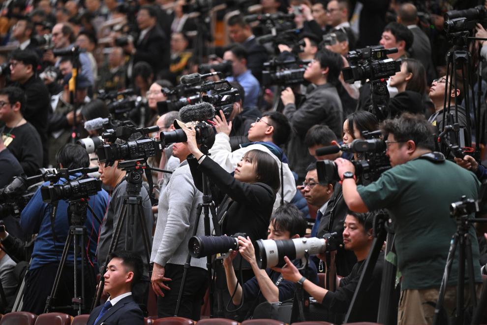 3月5日,十四屆全國(guó)人大三次會(huì)議開(kāi)幕會(huì)在北京人民大會(huì)堂舉行。這是記者在會(huì)場(chǎng)采訪(fǎng)。