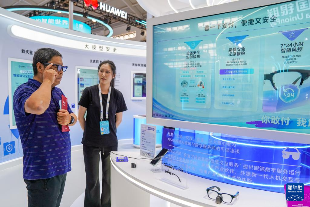 9月15日,觀眾在云南昆明舉行的2025年國家網(wǎng)絡(luò)安全宣傳周配套活動——網(wǎng)絡(luò)安全博覽會暨網(wǎng)絡(luò)安全產(chǎn)品和服務(wù)國際推介會上體驗(yàn)智能眼鏡。新華社記者 彭奕凱 攝