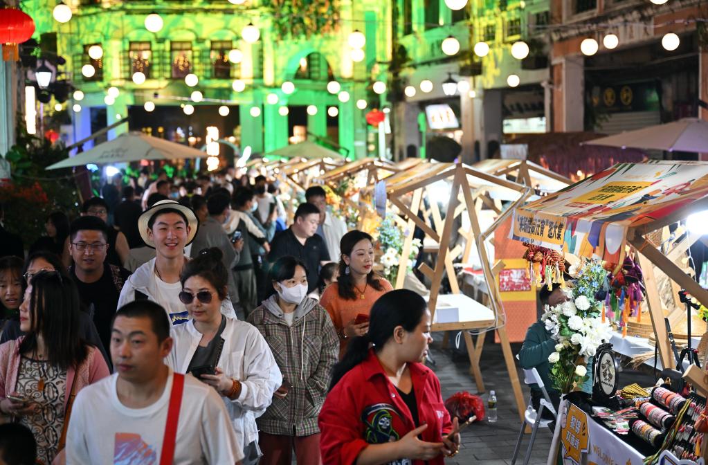 2月4日,游客在??隍T樓老街逛市集。新華社記者郭程 攝