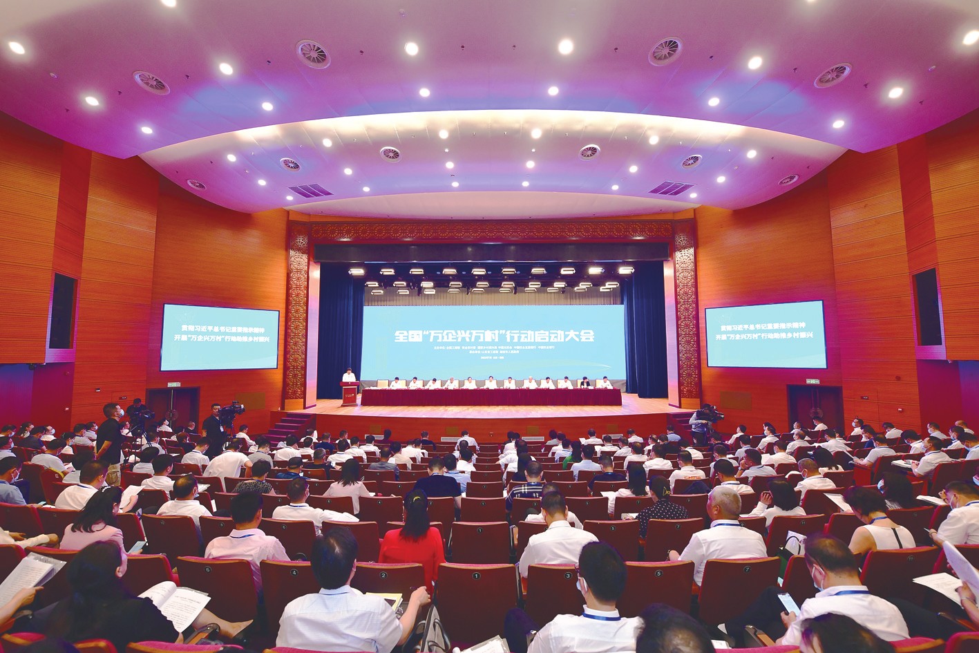 2021年7月16日,全國工商聯(lián)、農(nóng)業(yè)農(nóng)村部、國家鄉(xiāng)村振興局、中國光彩事業(yè)促進(jìn)會(huì)、農(nóng)發(fā)行、農(nóng)行等六單位在山東濰坊共同召開全國“萬企興萬村”行動(dòng)啟動(dòng)大會(huì)。本報(bào)記者張雷/攝