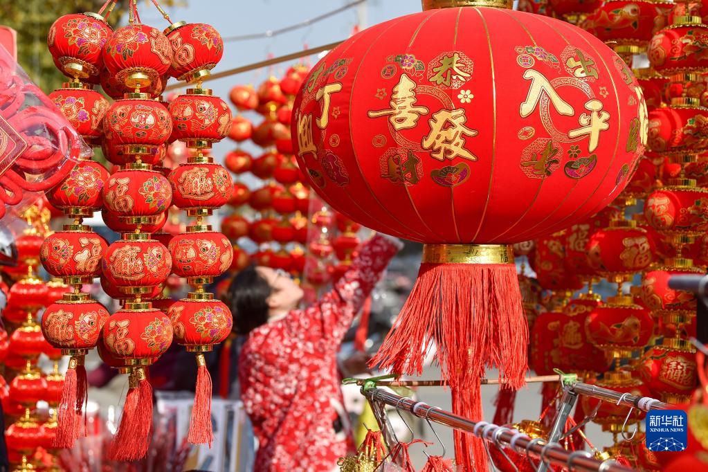 1月19日,江蘇省如皋市白蒲鎮(zhèn)居民在選購春節(jié)飾品。新華社發(fā)(方東旭 攝)