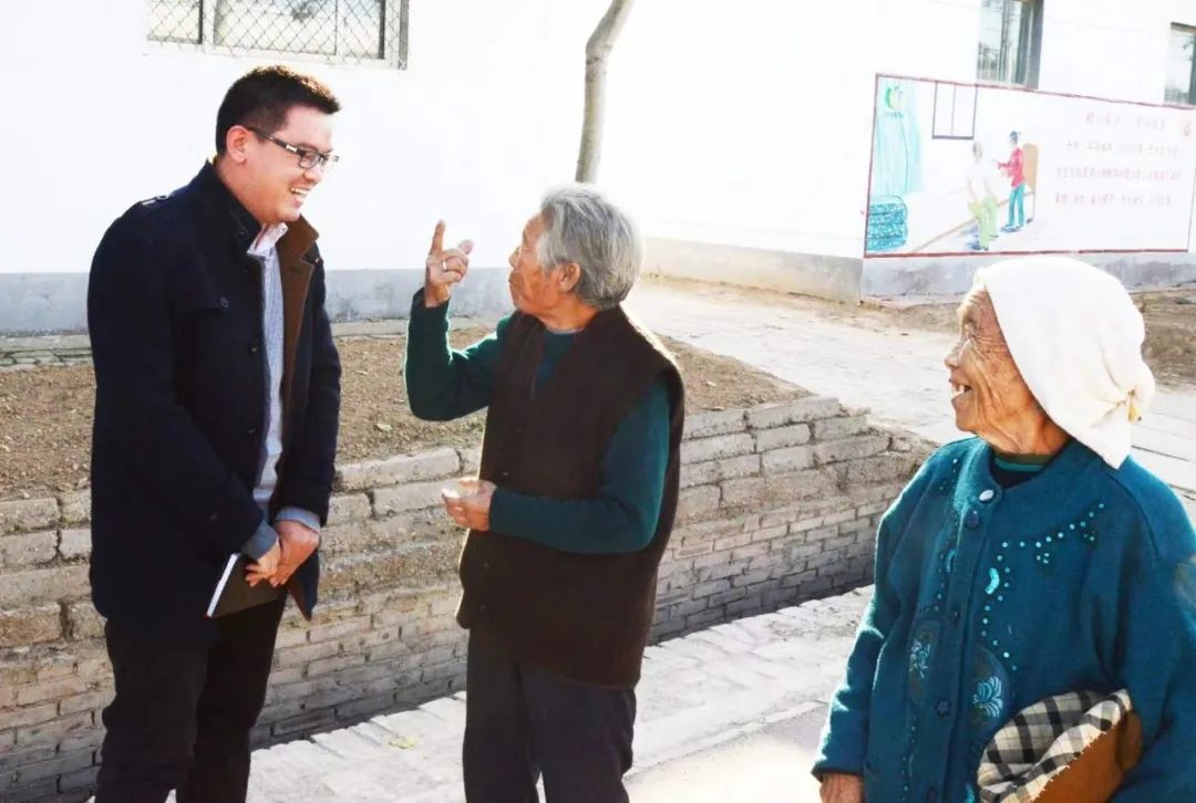 山東德州日?qǐng)?bào)社任立松在農(nóng)村社區(qū)采訪