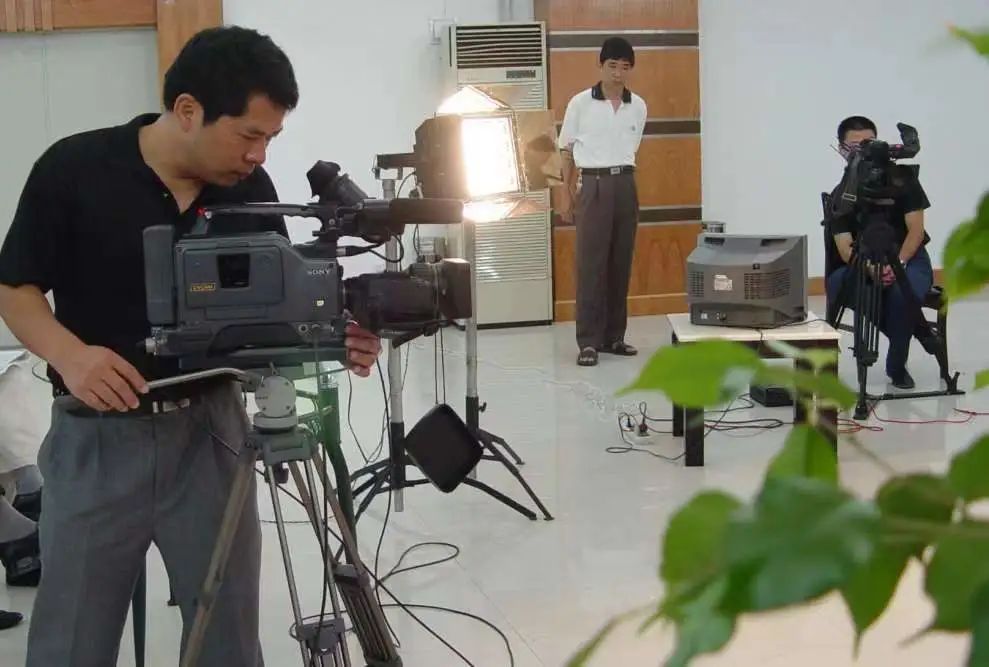 2005年5月,福建尤溪縣融媒體中心陳大勤(左)在錄制全景西岸專欄訪談現(xiàn)場